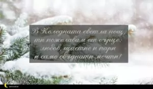 ноември 29, 2020 Коледа Пожелание за Коледа 99 за 30 януари 2026 В Коледната светла нощ, ти пожелавам от сърце: любов, щастие и пари и само сбъднати мечти!
