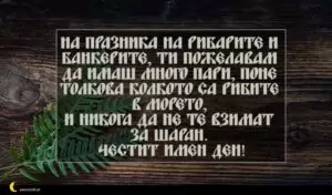 ноември 29, 2020 Никулден Пожелание за Никулден 13 за 30 януари 2026 На празника на рибарите и банкерите, ти пожелавам да имаш много пари, поне толкова колкото са рибите в морето, и никога да не те взимат за шаран. Честит имен ден!