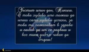 ноември 29, 2020 Никулден Пожелание за Никулден 25 за 30 януари 2026 Честит имен ден, Никола. С това хубаво име можеш да имаш само хубави успехи, за това ти пожелавам в здраве и любов да им се радваш и все така добър човек да бъдеш!