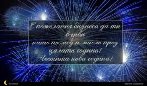 декември 30, 2020 Нова Година Пожелание за Нова Година 13 за 30 януари 2026 С пожелания бизнеса да ти върви като по мед и масло през цялата година! Честита нова година!