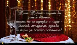 декември 30, 2020 Нова Година Пожелание за Нова Година 26 за 30 януари 2026 Нека Новата година ви донесе всичко, което не се купува с пари – любов, мъдрост, здраве и пари за всичко останало!