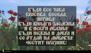 октомври 13, 2020 Петковден Пожелание за Петковден 10 за 30 януари 2026 Бъди все така красива, весела, игрива! Бъди винаги засмяна и в искри обляна! Бъди нежна и добра и се отдай на любовта! Честит празник!