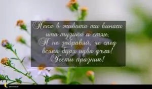 октомври 13, 2020 Петковден Пожелание за Петковден 20 за 30 януари 2026 Нека в живота ти винаги има музика и смях. И не забравяй, че след всяка буря идва дъга! Чести празник!