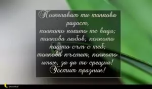 октомври 13, 2020 Петковден Пожелание за Петковден 43 за 30 януари 2026 Пожелавам ти толкова радост, колкото когато те видя; толкова любов, колкото когато съм с теб; толкова късмет, колкото имах, за да те срещна! Честит празник!