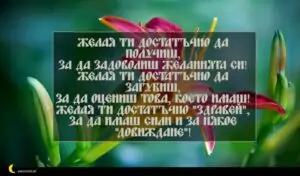 октомври 13, 2020 Петковден Пожелание за Петковден 58 за 30 януари 2026 Желая ти достатъчно да получиш, за да задоволиш желанията си! Желая ти достатъчно да загубиш, за да оцениш това, което имаш! Желая ти достатъчно „Здравей„, за да имаш сили и за някое „Довиждане„!