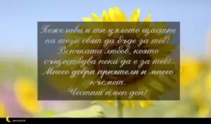октомври 13, 2020 Петковден Пожелание за Петковден 61 за 30 януари 2026 Пожелавам ти цялото щастие на този свят да бъде за теб! Всичката любов, която съществува нека да е за теб! Много добри приятели и много късмет. Честит имен ден!