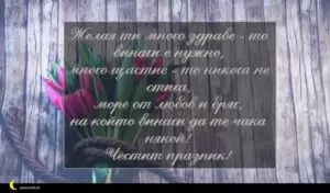 октомври 13, 2020 Петковден Пожелание за Петковден 71 за 30 януари 2026 Желая ти много здраве – то винаги е нужно, много щастие – то никога не стига, море от любов и бряг, на който винаги да те чака някой! Честит празник!