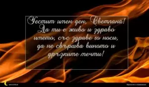 февруари 6, 2020 Пламен/Огнян Пожелание за Пламен/Огнян 9 за 30 януари 2026 Честит имен ден, Светлана! Да ти е живо и здраво името, със здраве го носи, да не свършва виното и дръзките мечти!