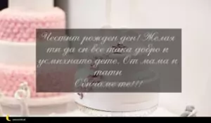 май 21, 2020 Рожден ден на дете Пожелание за Рожден Ден на Дете 11 за 30 януари 2026 Честит рожден ден! Желая ти да си все така добро и усмихнато дете. От мама и тати Обичаме те!!!