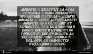 Любовта и животът са една приказка с общо начало и преплетени пътища – защото любовта е, която дарява живот! Любовта не е само миг от вечността, тя е безгранична и вечна. Когато пътищата се преплитат, когато искате да задържите мига завинаги – подарете си семейство създадено с Любов!