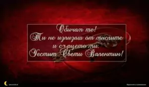 февруари 6, 2020 Св. Валентин Пожелание за свети Валентин 28 за 30 януари 2026 Обичам те! Ти не излизаш от мислите и сърцето ми. Честит Свети Валентин!