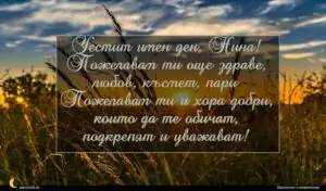 януари 14, 2021 св. Нина Пожелание за св. Нина 11 за 30 януари 2026 Честит имен ден, Нина! Пожелавам ти още здраве, любов, късмет, пари Пожелавам ти и хора добри, които да те обичат, подкрепят и уважават!