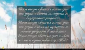 януари 14, 2021 св. Нина Пожелание за св. Нина 7 за 30 януари 2026 Нека този светъл имен ден те дари с вечна младост и безкрайна радост! Нека този светъл имен ден те дари с голямо щастие и много добрини в живота! Нека този светъл ден е Ден само и единствено за Теб!