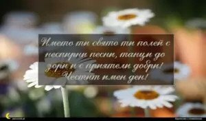януари 14, 2021 св. Нина Пожелание за св. Нина 9 за 30 януари 2026 Името ти свято ти полей с неспирни песни, танци до зори и с приятели добри! Честит имен ден!