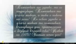 Пожелавам ти здраве, то се подразбира. Пожелавам ти дълъг живот, и това е повече от ясно! Но освен здраве и дълъг живот ти пожелавам вълнуващи дни, приключения и безброй вълшебства! Живей на 100%! Честит имен ден!