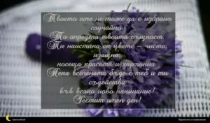 март 8, 2020 Цветница Пожелание за Цветница 7 за 30 януари 2026 Твоето име не може да е избрано случайно. То определя твоята същност. Ти наистина си цвете – чиста, изящна, носеща красота и хармония. Нека вселената бъде с теб и ти съдейства във всяко ново начинание! Честит имен ден!