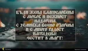 март 2, 2020 8 март Пожелание за 8 март 10 за 30 януари 2026 Бъди жена благословена с любов и нежност надарена с усмивка вечно озарена и с много радост наградена! Честит 8 март!