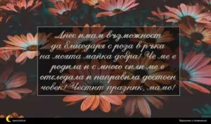 март 2, 2020 8 март Пожелание за 8 март 16 за 30 януари 2026 Днес имам възможност да благодаря с роза в ръка на моята майка добра! Че ме е родила и с много сили ме е отгледала и направила достоен човек! Честит празник, мамо!