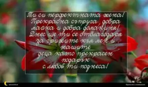 март 2, 2020 8 март Пожелание за 8 март 31 за 30 януари 2026 Ти си перфектната жена! Прекрасна съпруга, добра майка и добра домакиня! Днес ще ти се отблагодаря за грижите към мен и нашите деца като прекрасен подарък с любов ти поднеса!