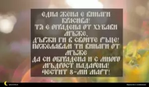 март 2, 2020 8 март Пожелание за 8 март 33 за 30 януари 2026 Една жена е винаги красива! Тя е оградена от хубави мъже, държи ги в своите ръце! Пожелавам ти винаги от мъже да си обградена и с много мъдрост надарена! Честит 8-ми март!