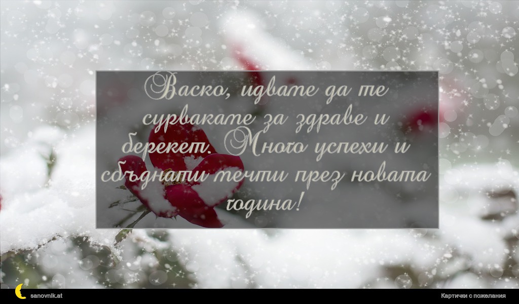 ВАСИЛ, ВАСА, ВАСИЛКА, ВАСИЛЕНА, ВАСИЛИЯ, ВАСО, ВАСЯ, ВЕСА, ВЕСЕЛ, ВЕСЕЛИНА, ВЕСЕЛА, ВЕСЕЛИН, ВЕСКО, ВЕСО, ВЪЛКАДИН, ВЪЛКАН, ВЪЛКО, ВЪЛЧО, ВЪЛО, ВЪЛЬО, ВЪЛЧАН, ВЪЧО, ВЪЛКАНА, ВЪЛА, ВЪЛЮ, Васил, Василка, Василий, Василен, Василена