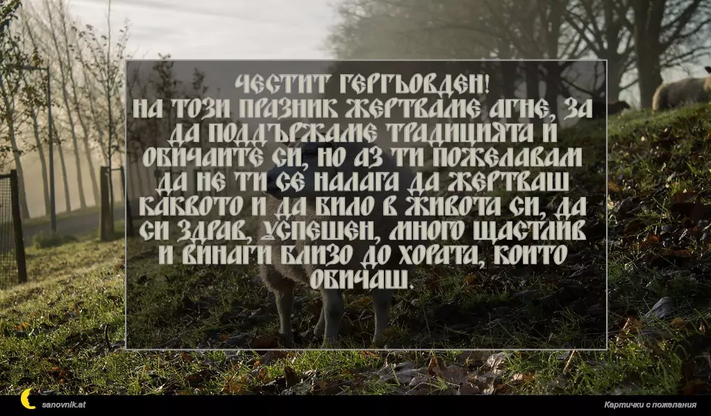 Чества се и като Празник на овчаря и на хората, занимаващи се с овцевъдство, защото според народните поверия Св. Георги е покровител на стадата, овчарите и земеделците.