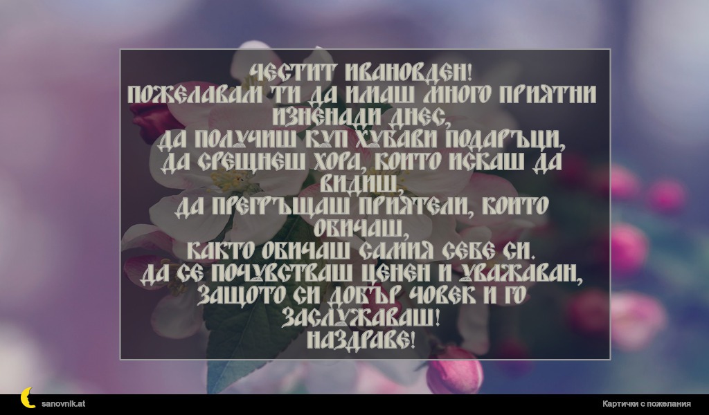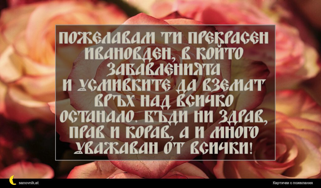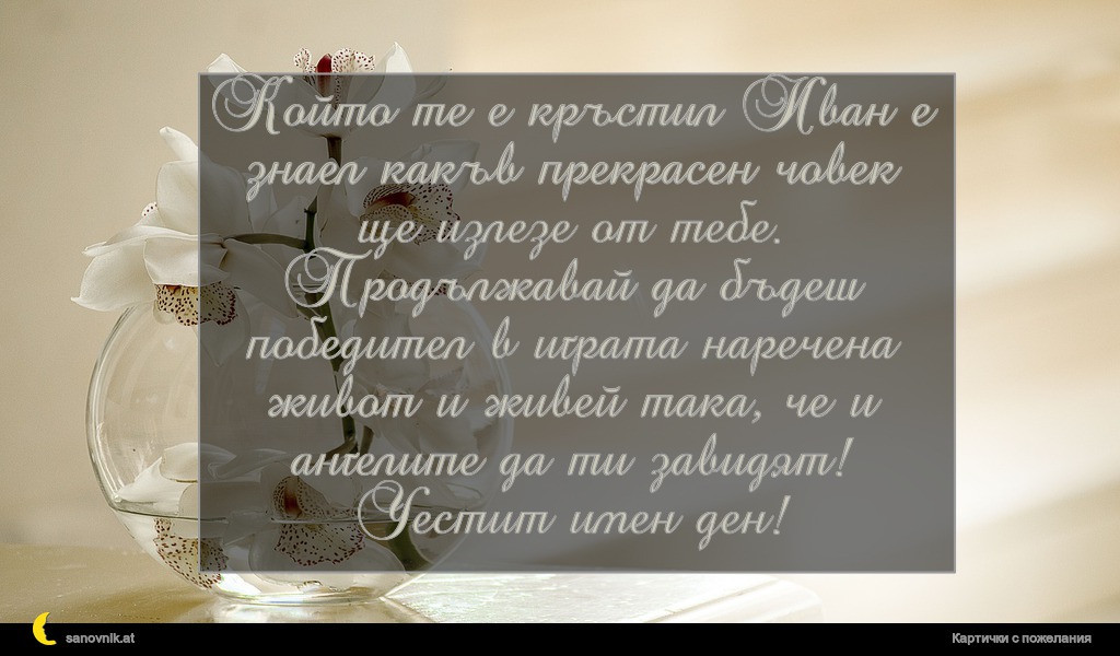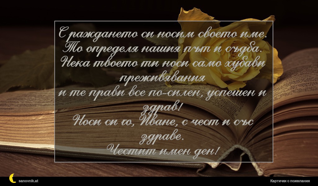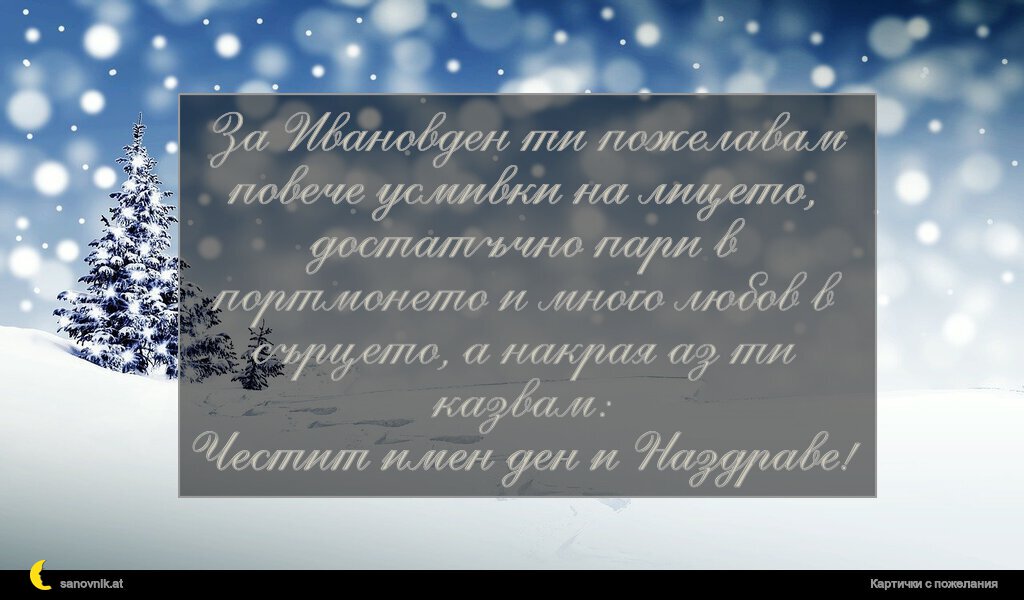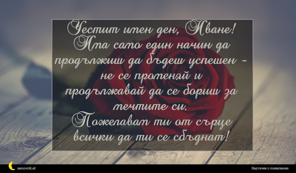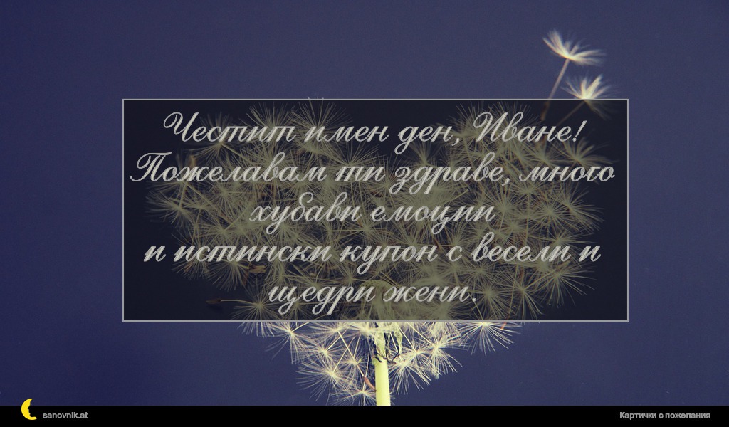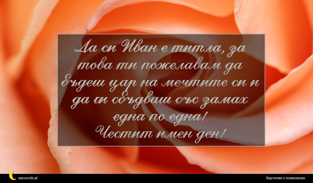 ВАНА, ВАНЯ, ВАНЬО, ВАНИНА, ЖАН, ЖАНА, ИВА, ИВАНА, ИВАНКА, ИВАЙЛА, ИВАЙЛО, ИВАН, ИВАНИНА, ИВАНИЧКА, ЙОН(А), ЙОНО, ЙОНКА, ЙОНКО, ЙОТО, ЙОТКО, ЙОТА, КАЛОЯН, КАЛОЯНА