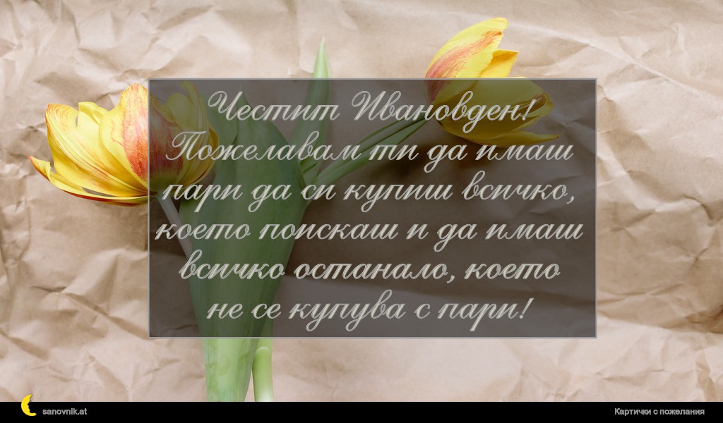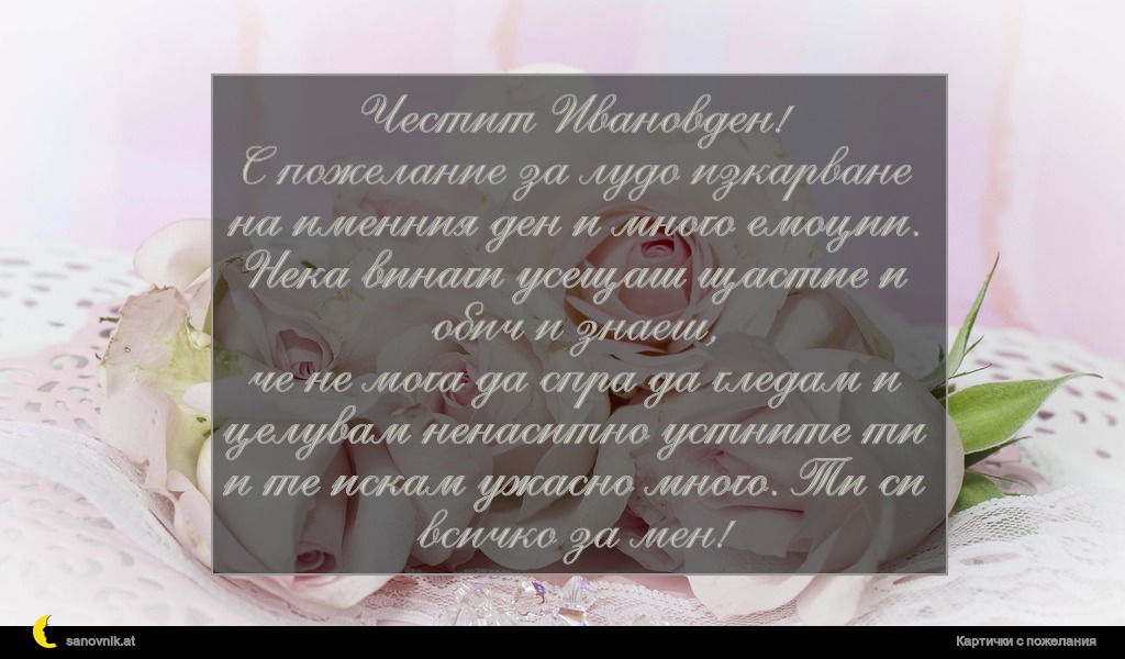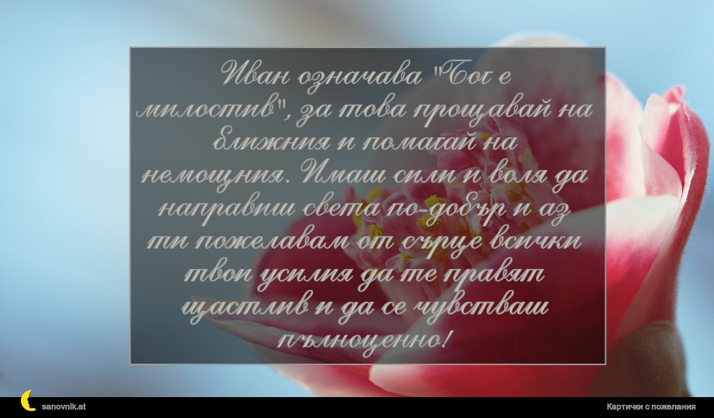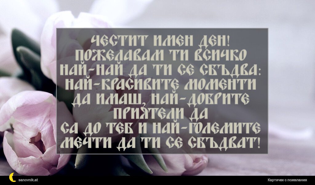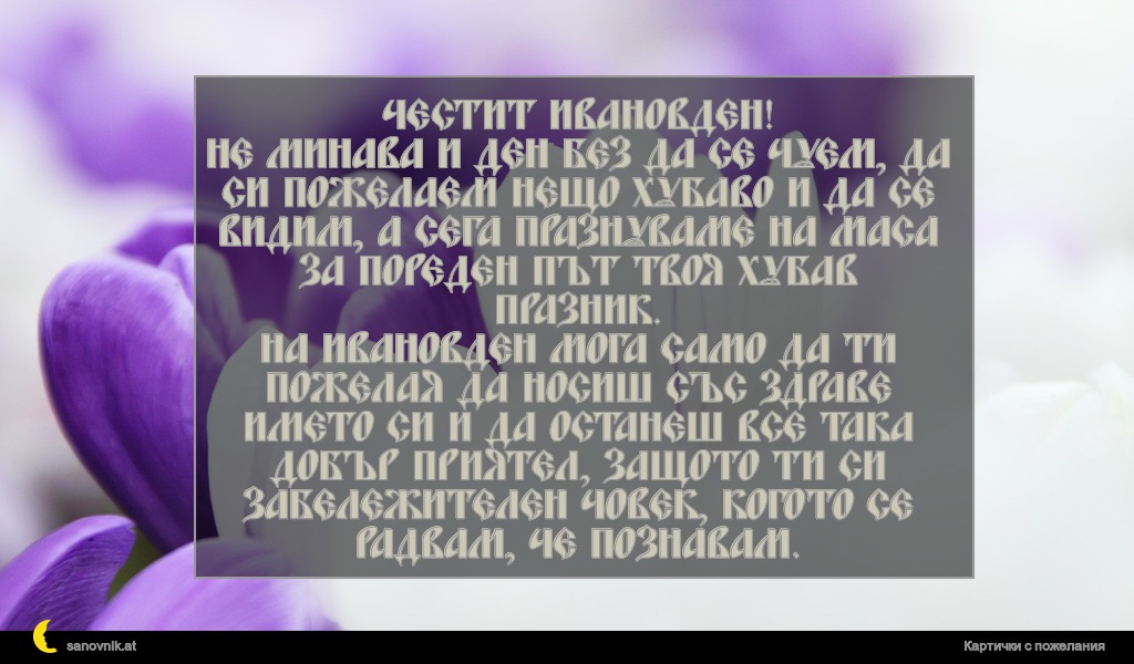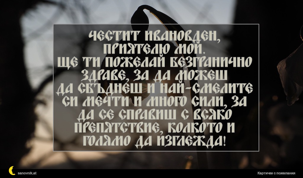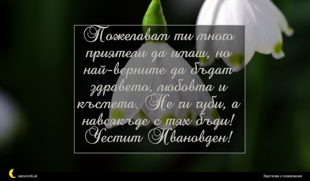 ВАНА, ВАНЯ, ВАНЬО, ВАНИНА, ЖАН, ЖАНА, ИВА, ИВАНА, ИВАНКА, ИВАЙЛА, ИВАЙЛО, ИВАН, ИВАНИНА, ИВАНИЧКА, ЙОН(А), ЙОНО, ЙОНКА, ЙОНКО, ЙОТО, ЙОТКО, ЙОТА, КАЛОЯН, КАЛОЯНА