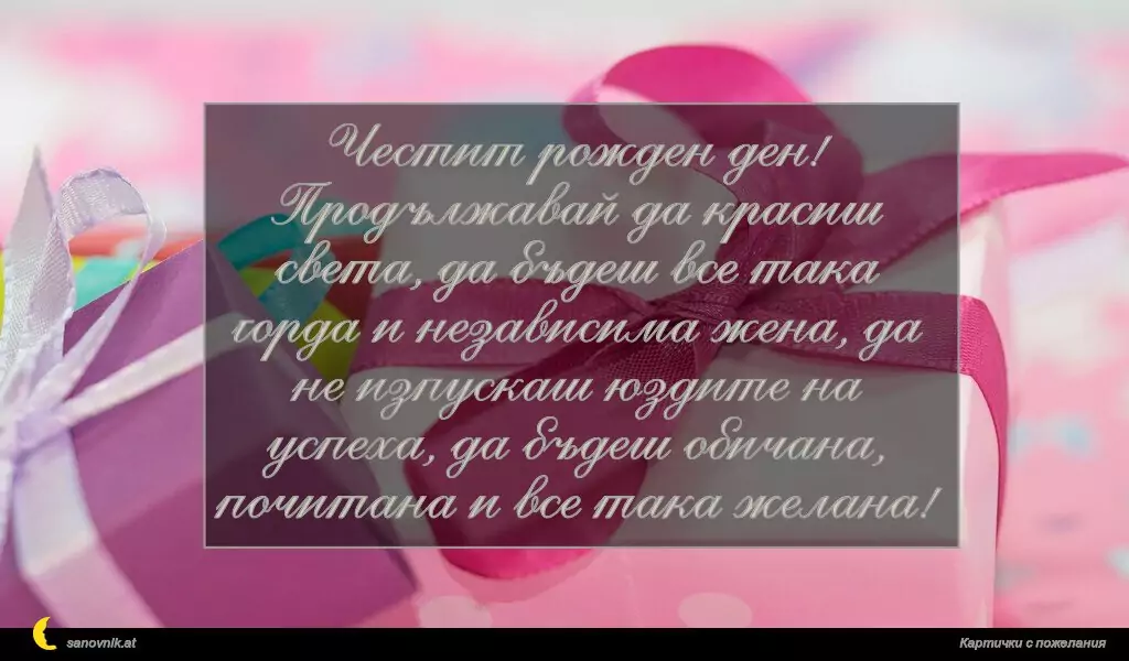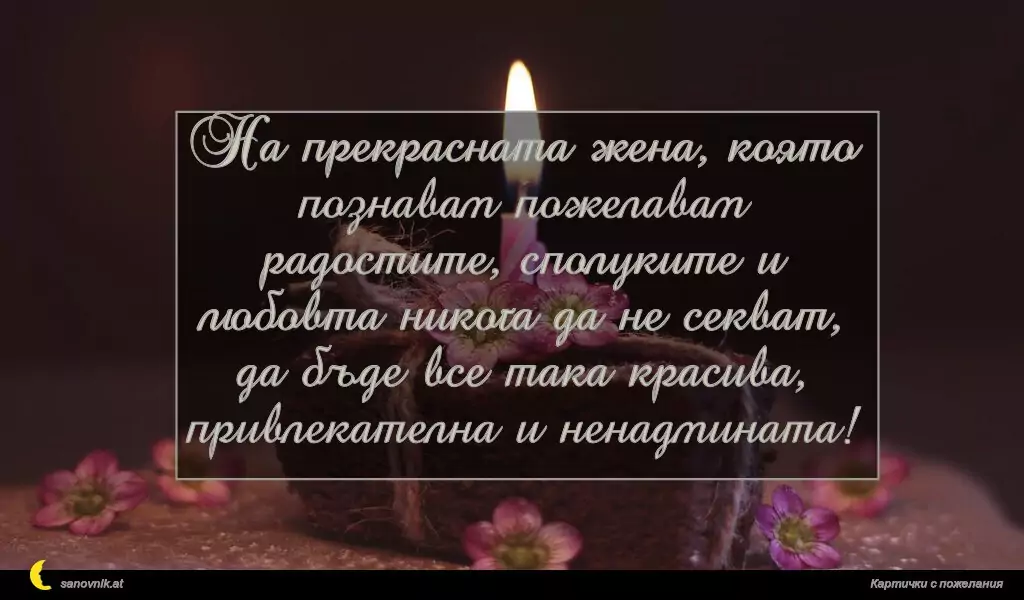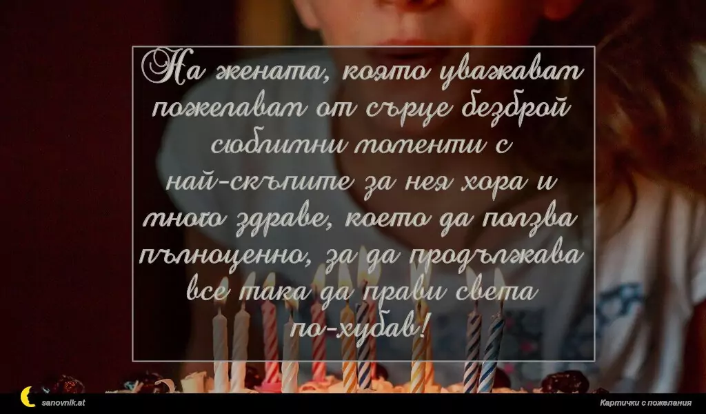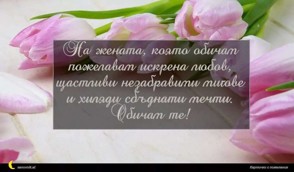 Изберете едно от пожеланията подходящи за жена, съпруга или приятелка жена. Или дори направо го споделете от мобилния си телефон.