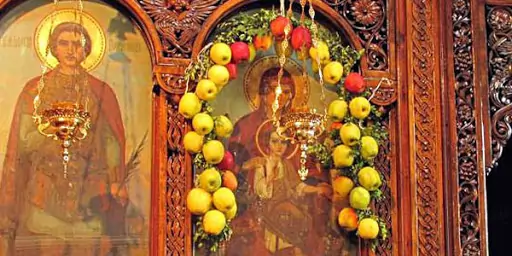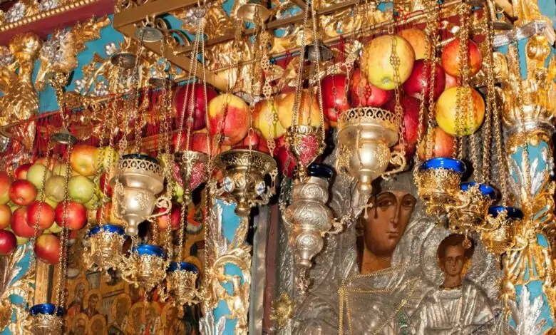 В събота следва празникът Похвала на Пресвета Богородица. Тъкмо на тоя ден след литургията свещеникът снема натежалия от плод венец от иконата на Девата и всяка двойка, дошла да се помоли за рожба, получава по една ябълка, която се изяжда цялата – със семето и дръжките.
